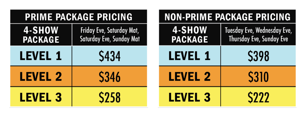 *Dates and show titles subject to change. Some package fees are non-refundable.
